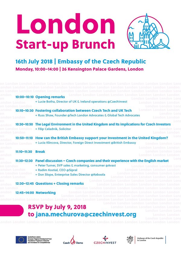 CzechInvest together with the British Embassy in Prague organise a brunch meeting for Czech start-ups exhibiting at the Unbound London show via one of the CzechInvest start-up support programmes. They will have an opportunity to learn practical information about entering the UK market.